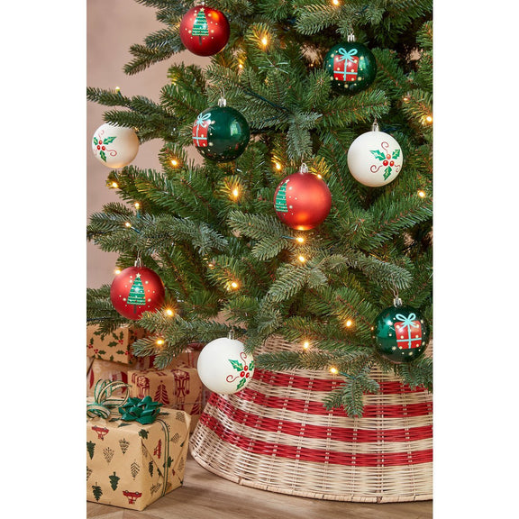 Deze kerstballen van Mica Decorations brengen een traditionele sfeer in huis. De set bevat 9 ballen in wit, rood en groen, elk voorzien van een eenvoudig, feestelijk dessin: hulstblaadjes, kerstcadeaus en dennenbomen. De kerstballen zijn gemaakt van gerecycled polystyreen en hebben een diameter van 8 cm. Dankzij het lichte materiaal zijn ze veilig en gemakkelijk op te hangen. Touwtjes zijn inbegrepen, dus je kunt direct beginnen met versieren. Na de feestdagen berg je ze eenvoudig op in de bijgeleverde bewaarverpakking.