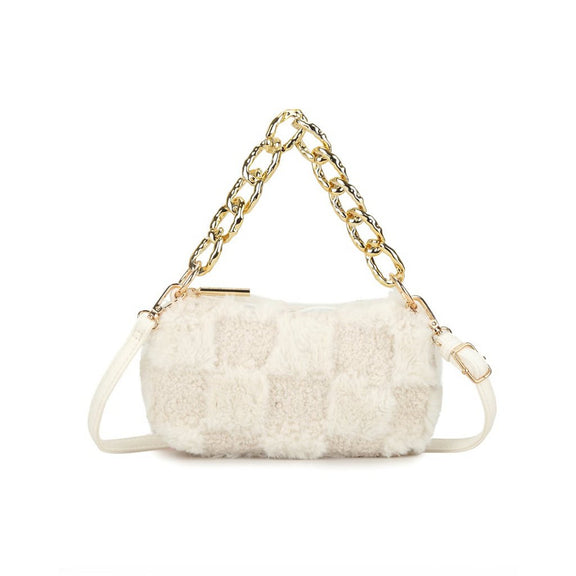 Deze teddy schoudertas van Giuliano Mode is dé must-have voor elke fashionista. Dankzij het compacte formaat neem je hem makkelijk mee, terwijl de zachte teddy-stof en gouden accenten zorgen voor een luxueuze uitstraling. Perfect voor dagelijks gebruik of een avondje uit!
